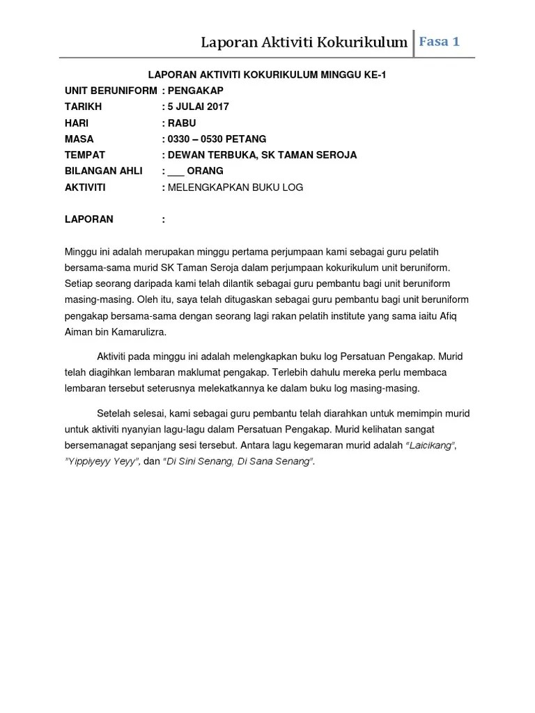 Borang Laporan Aktiviti Kokurikulum Mingguan Pdf